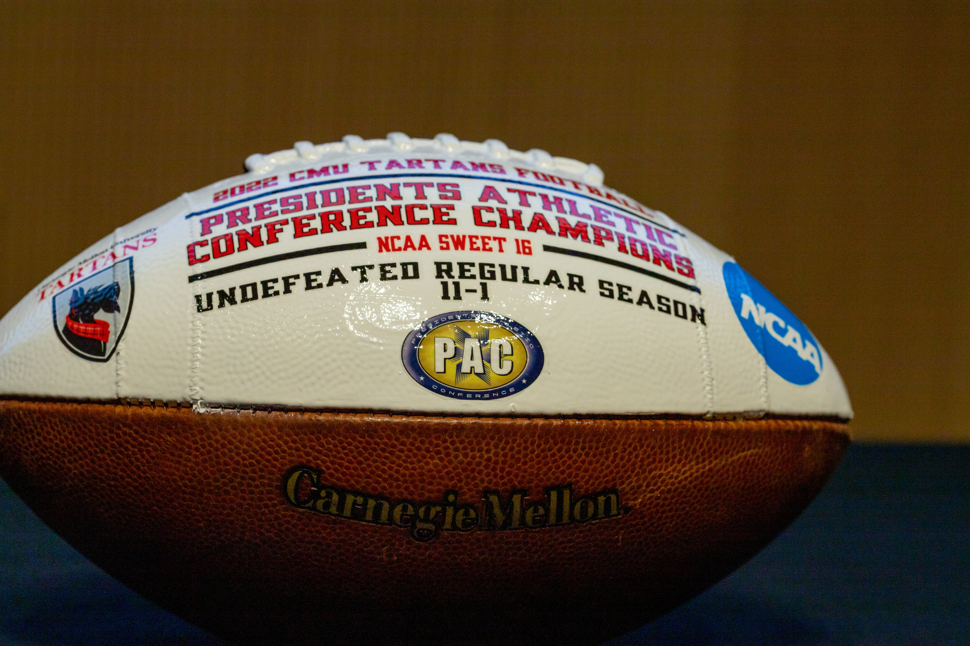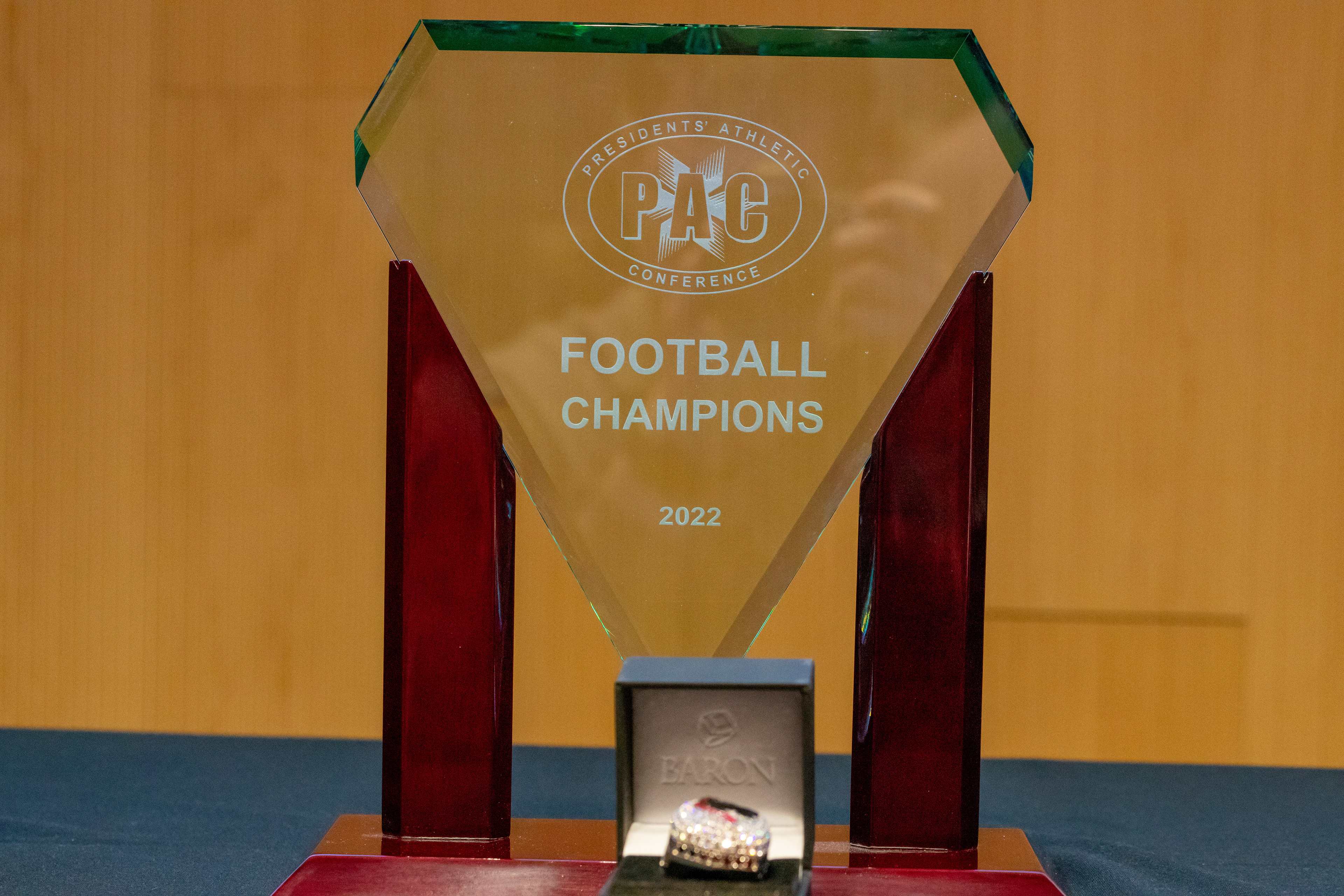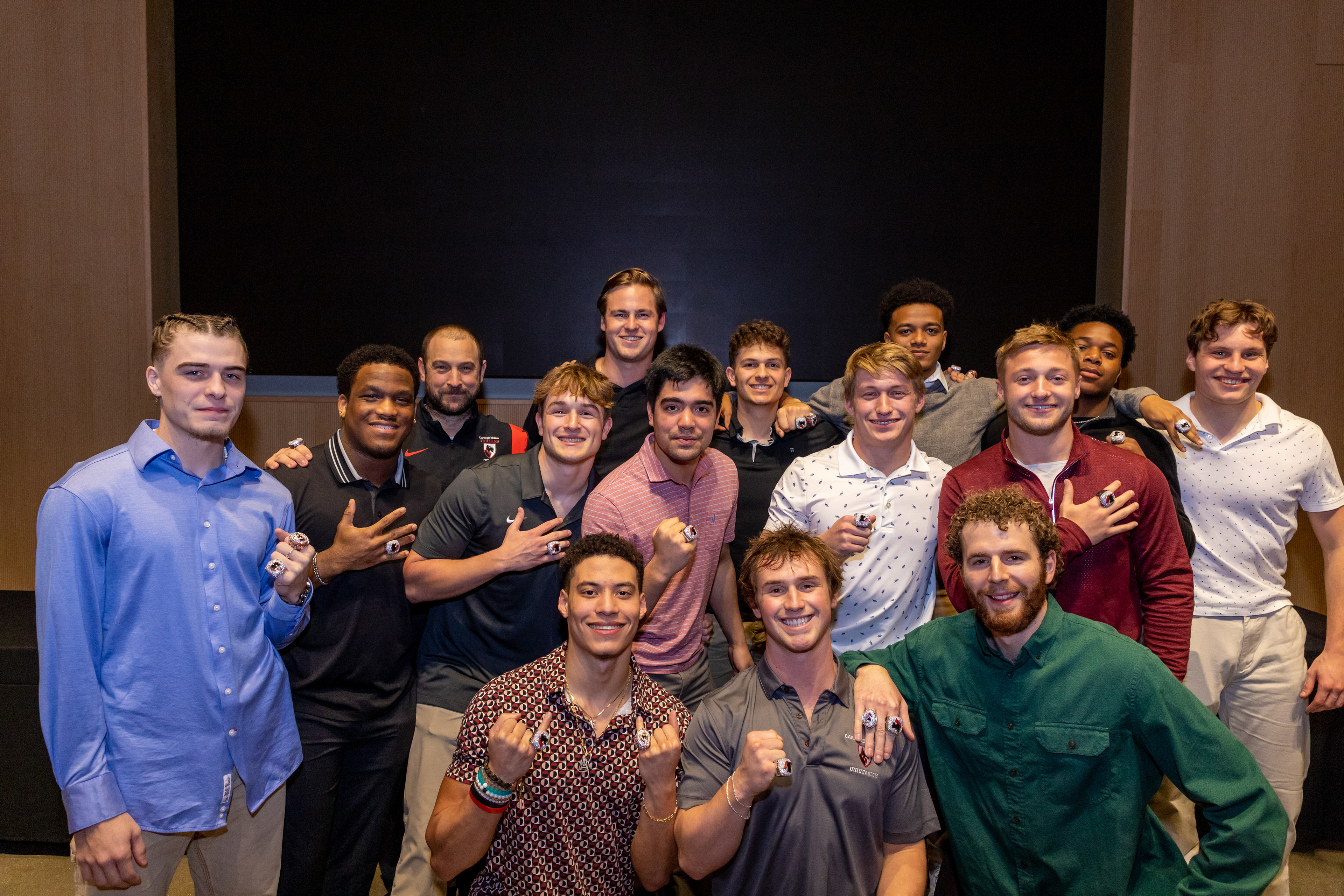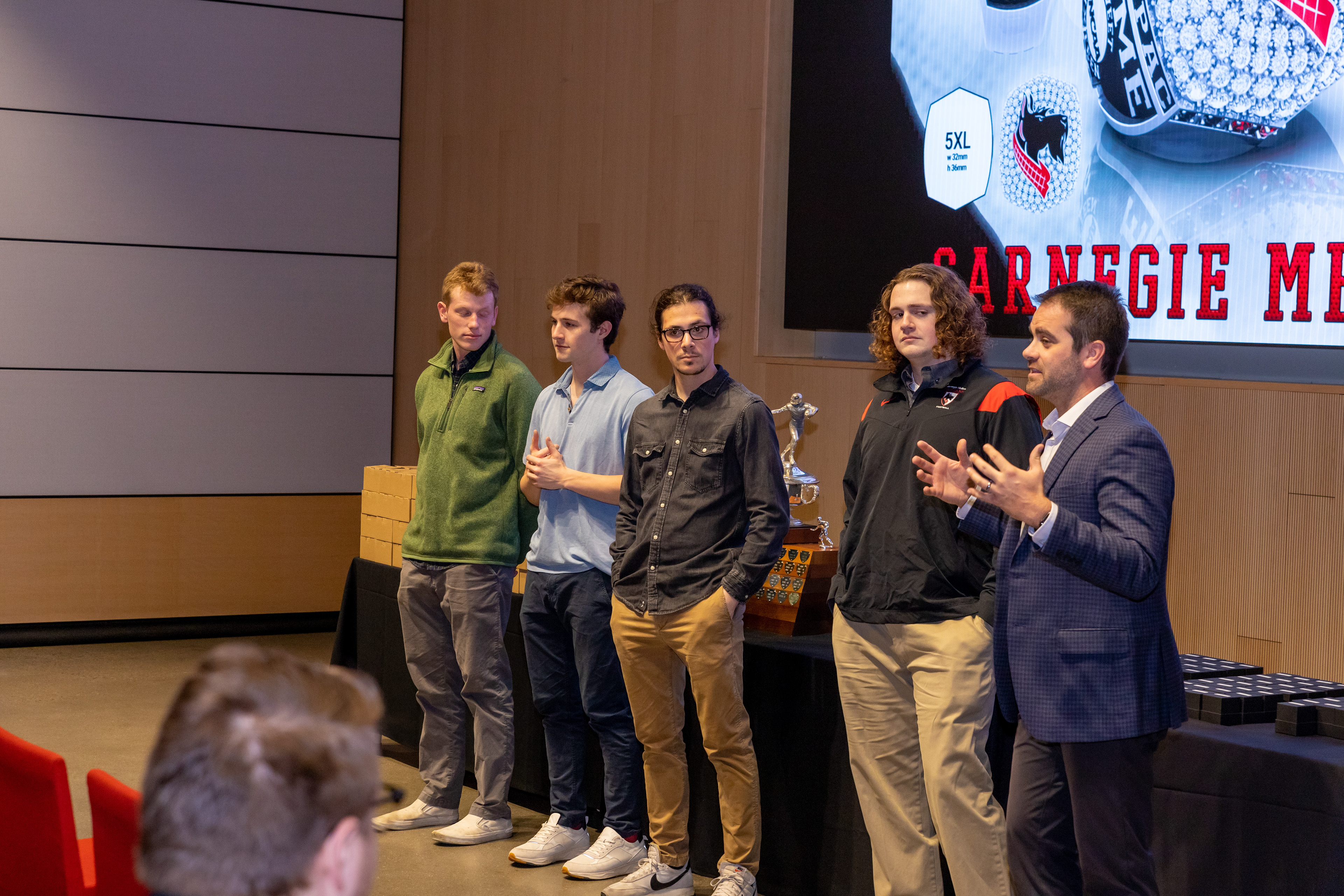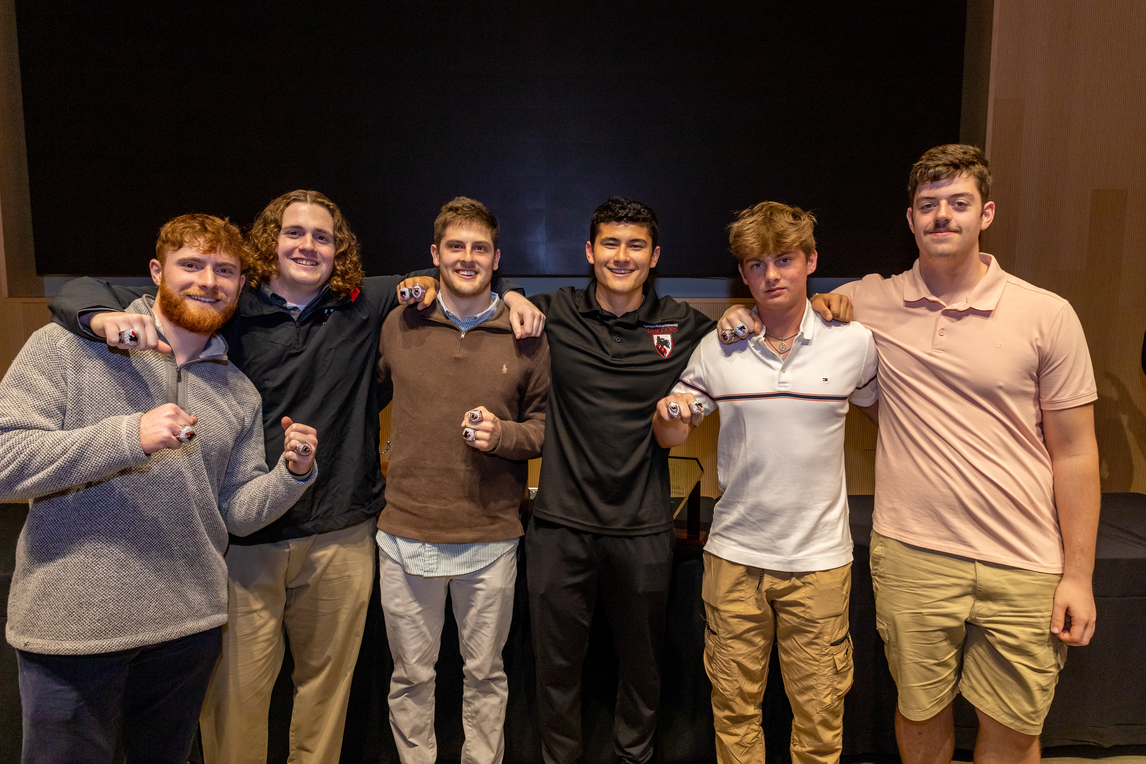 Photos from the Ring Ceremony for the 2022 President Athletics Conference Champions, the Carnegie Mellon University Tartans!
