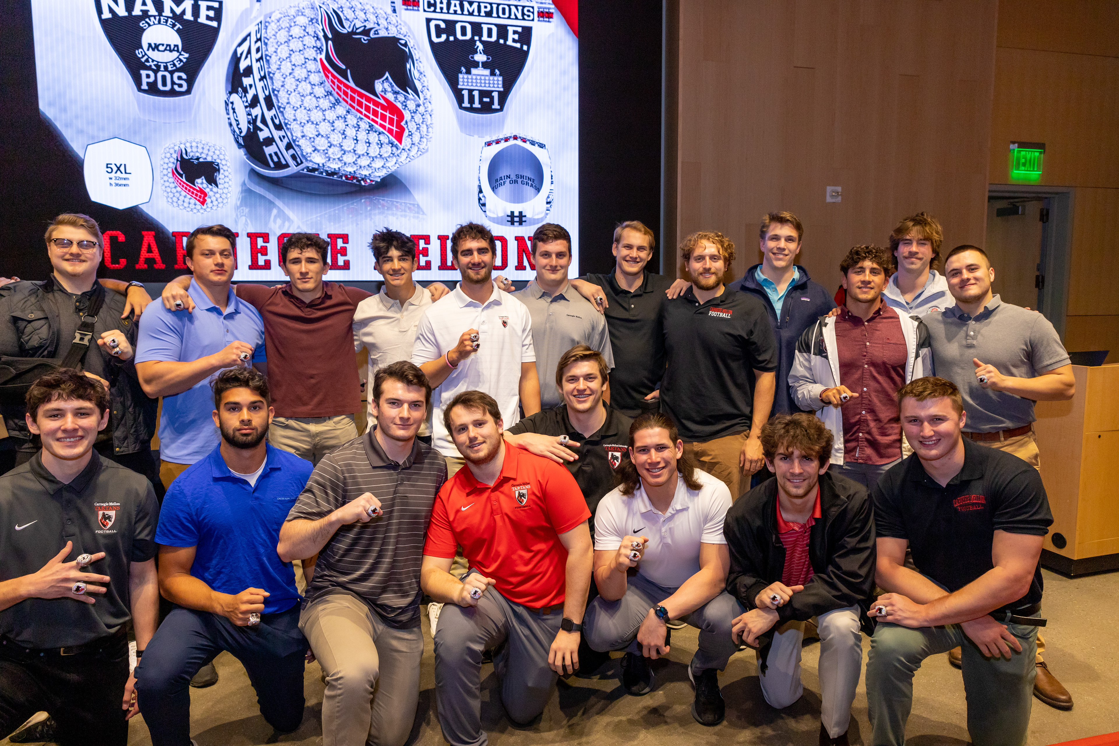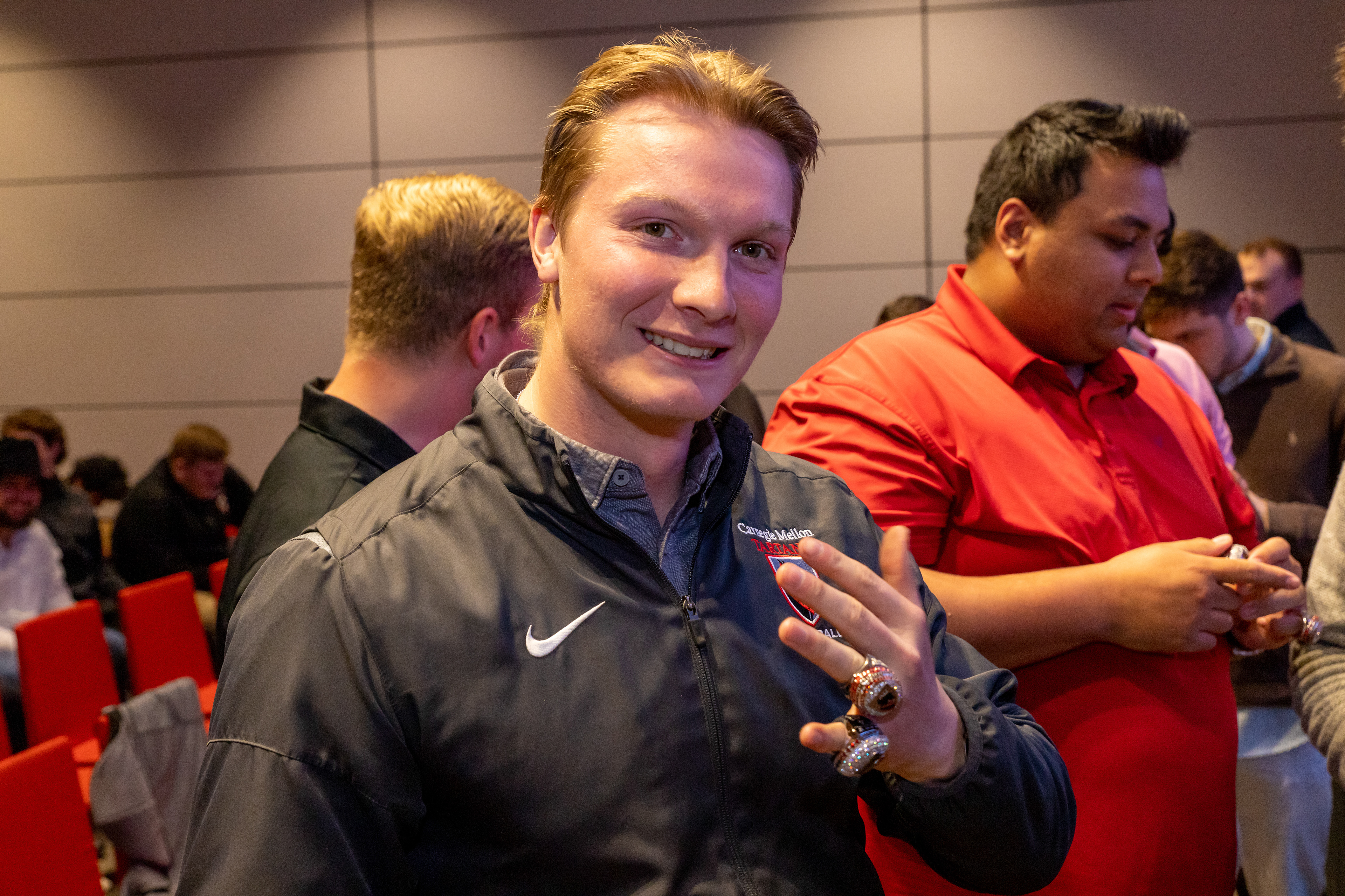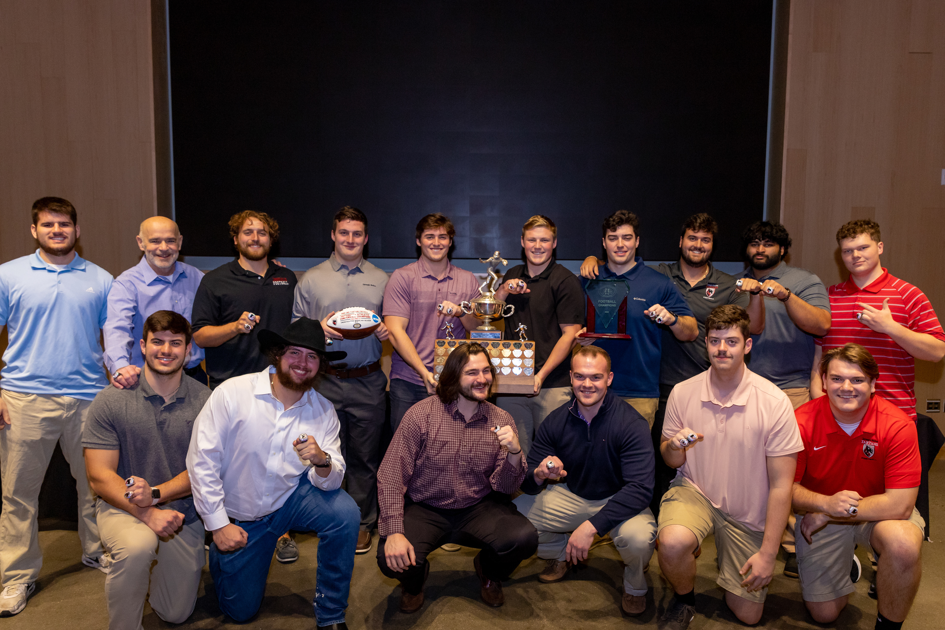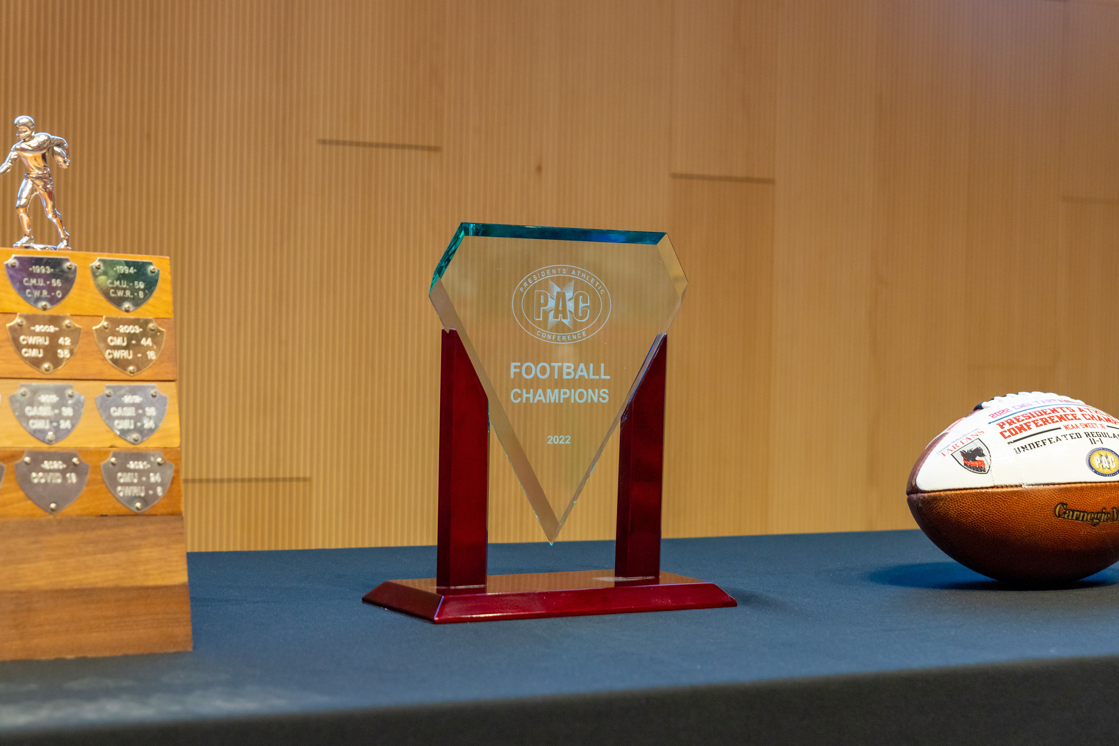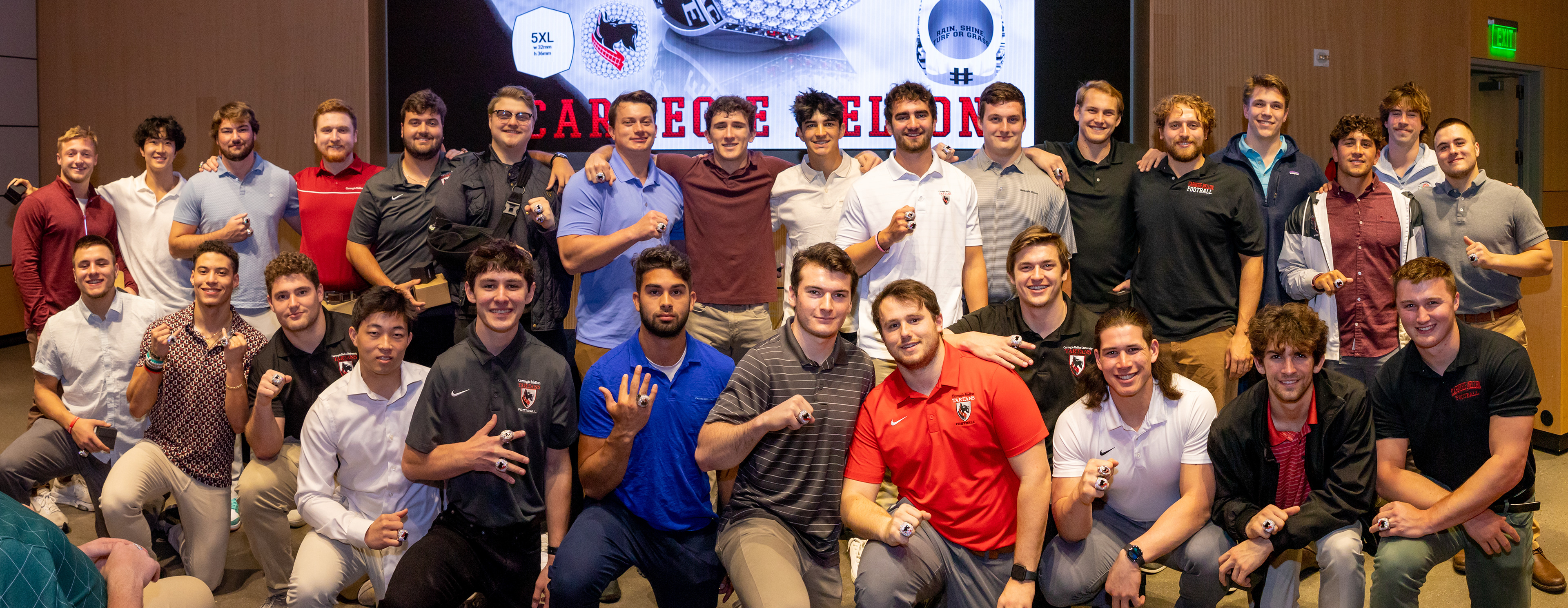 Photos from the Ring Ceremony for the 2022 President Athletics Conference Champions, the Carnegie Mellon University Tartans!