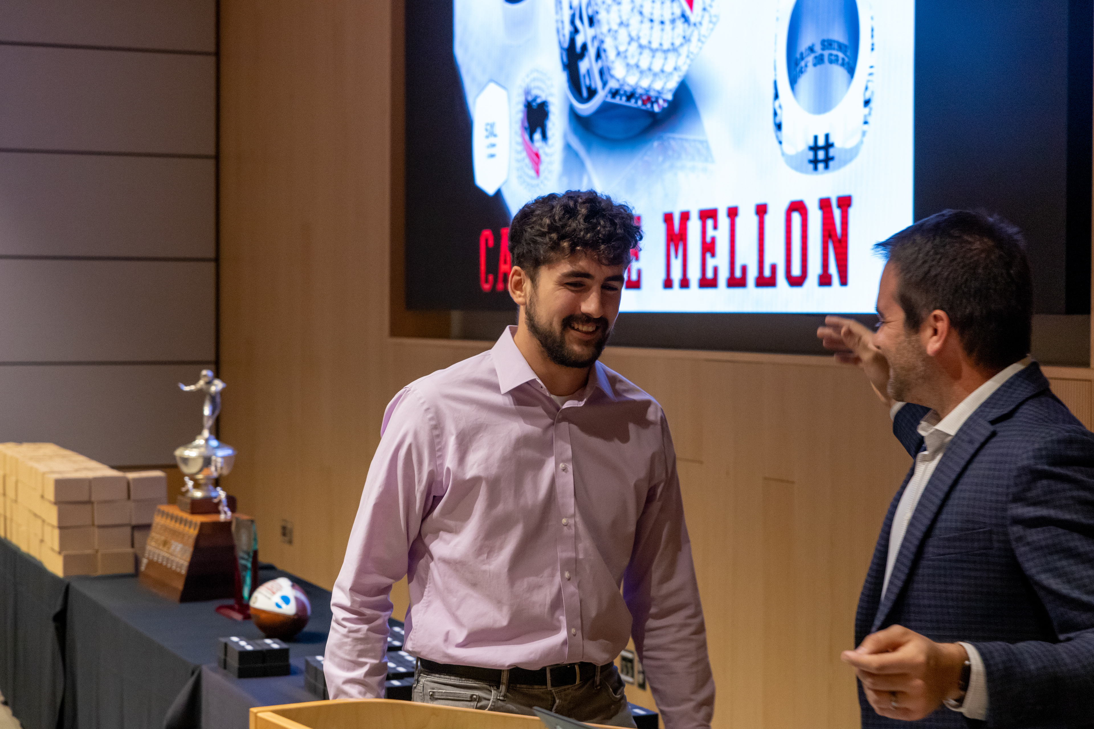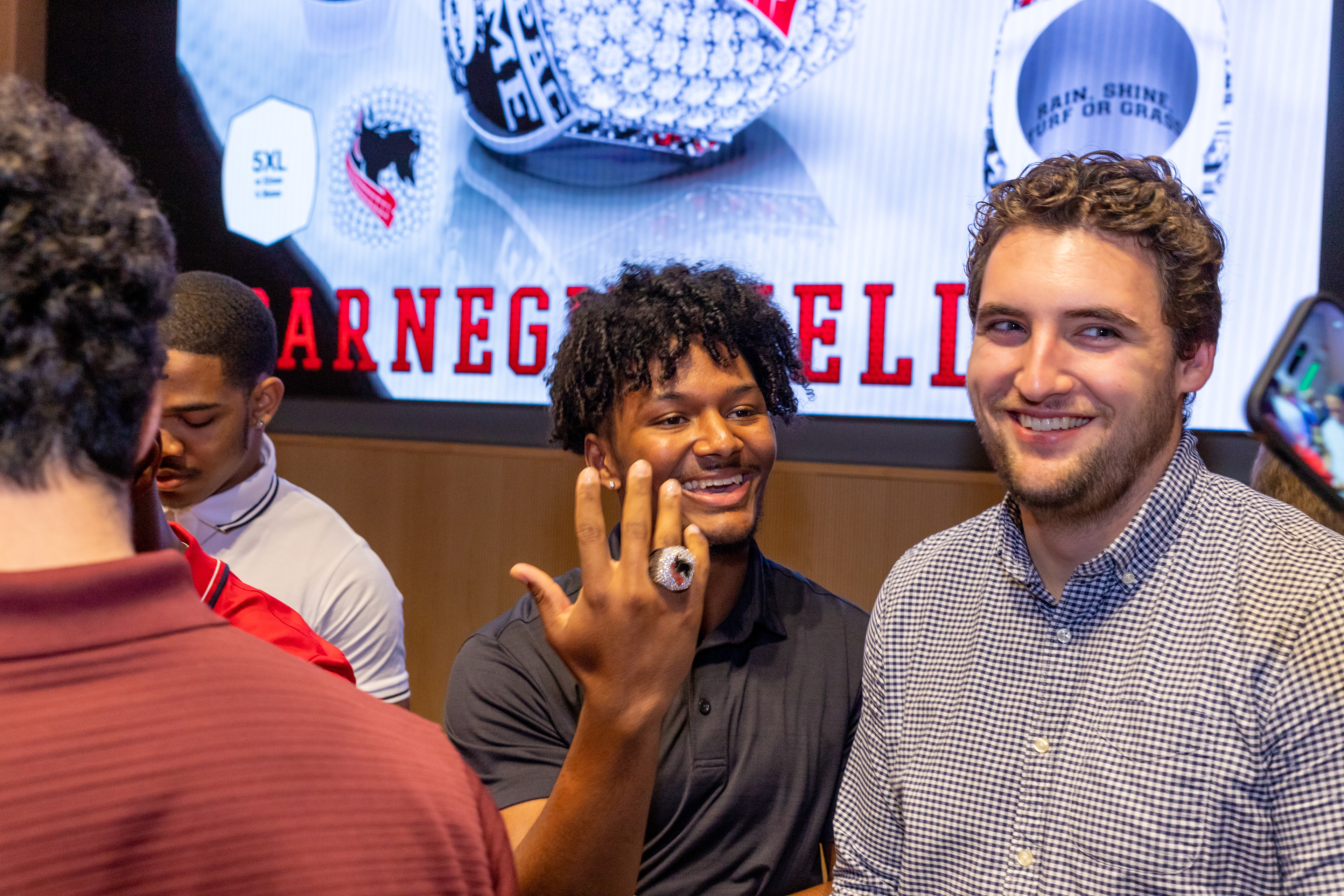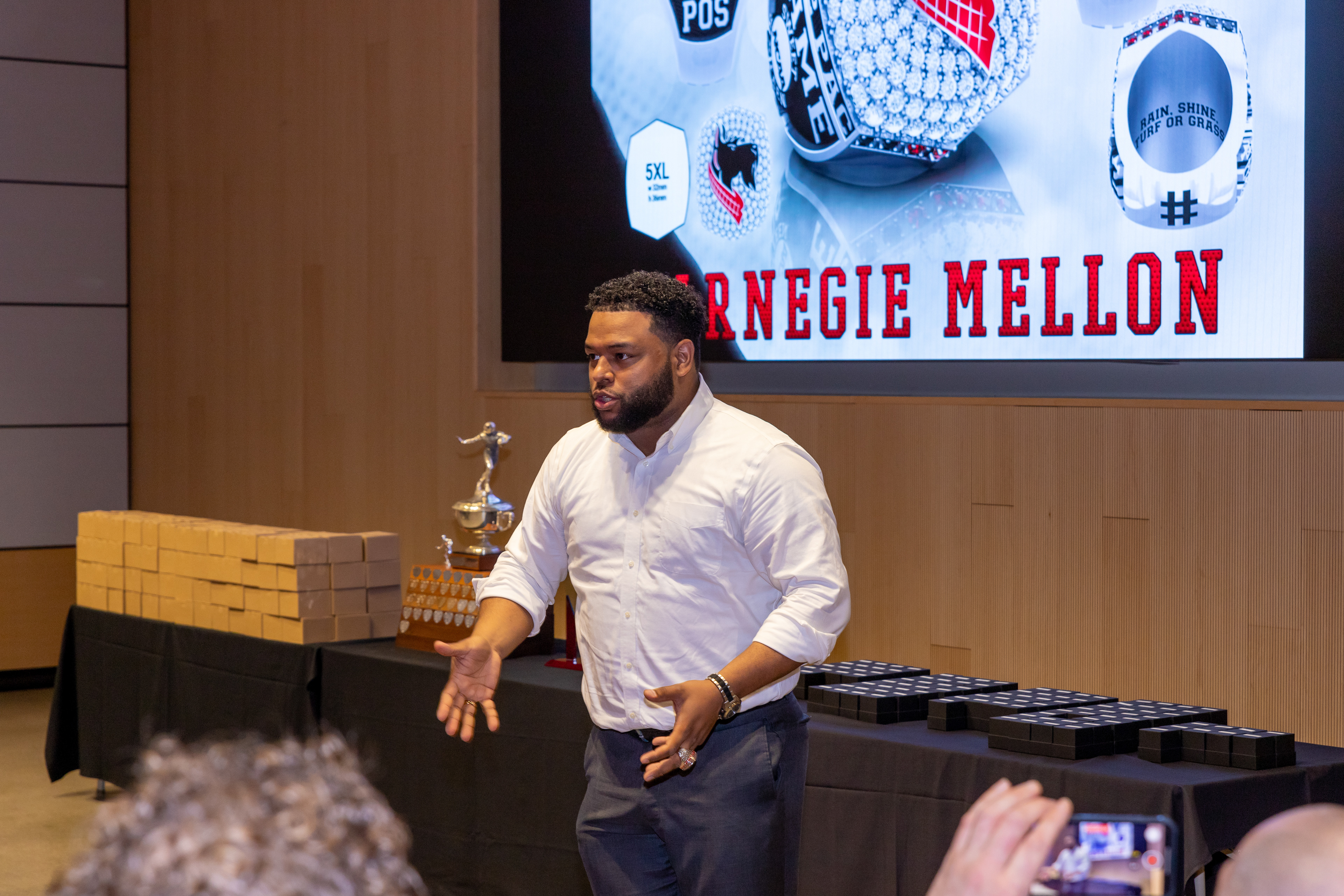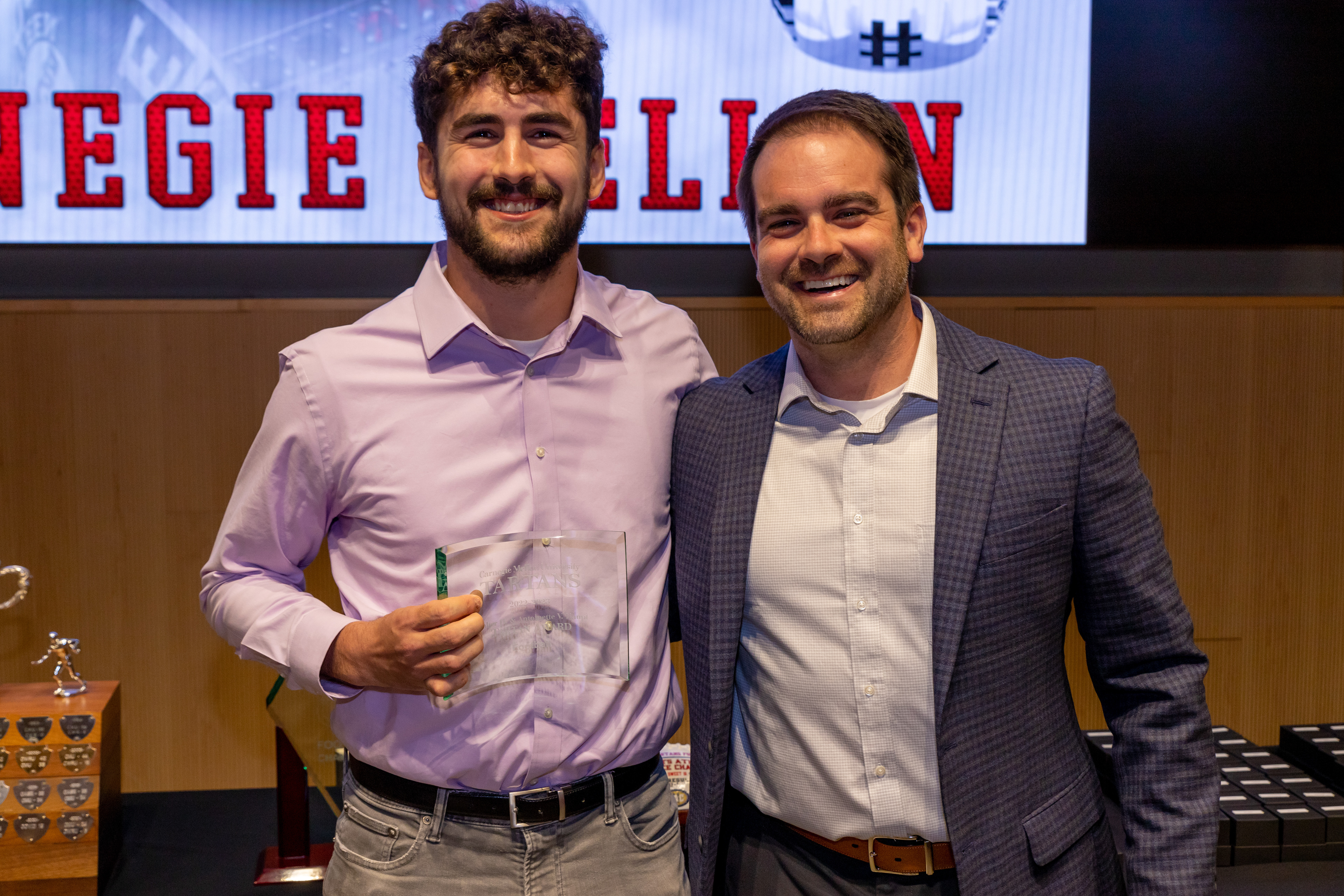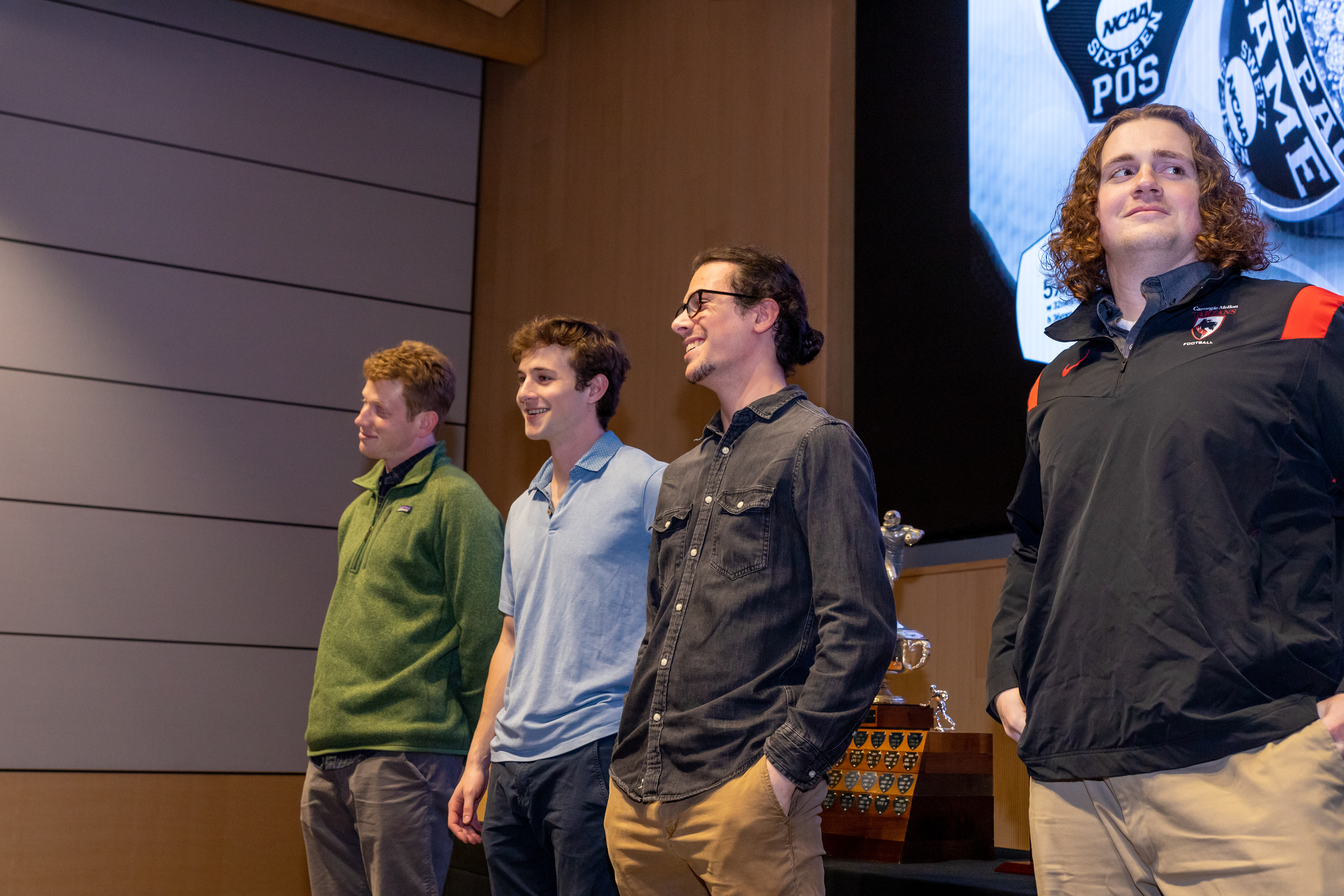 Photos from the Ring Ceremony for the 2022 President Athletics Conference Champions, the Carnegie Mellon University Tartans!