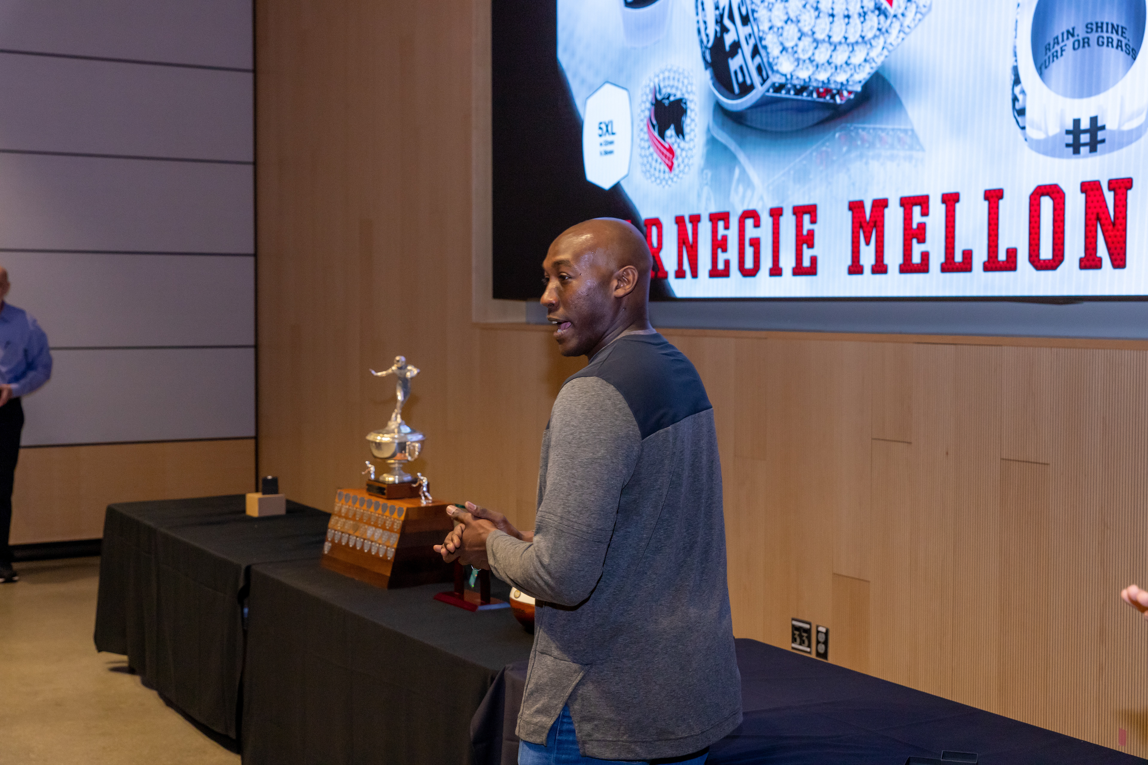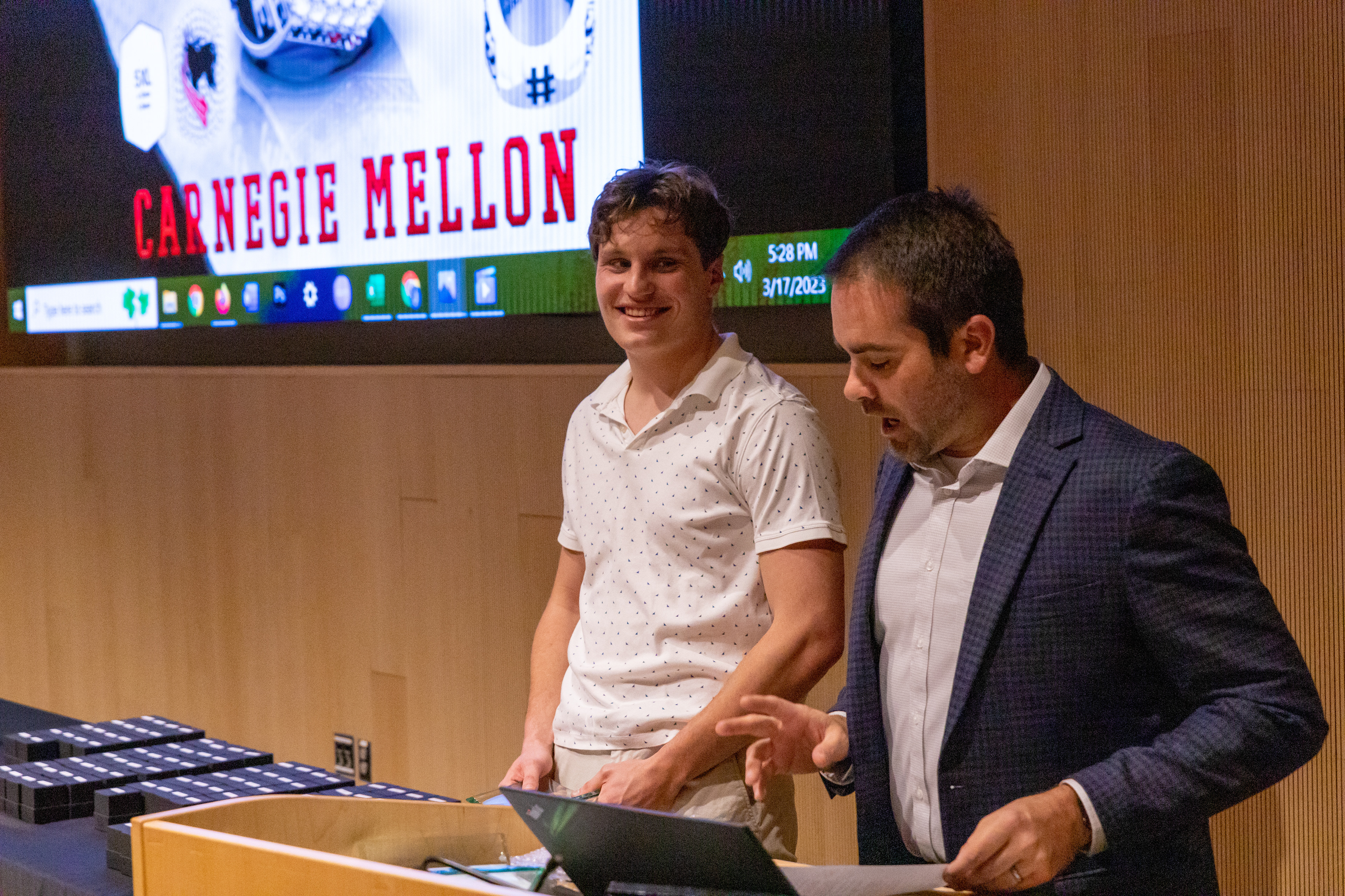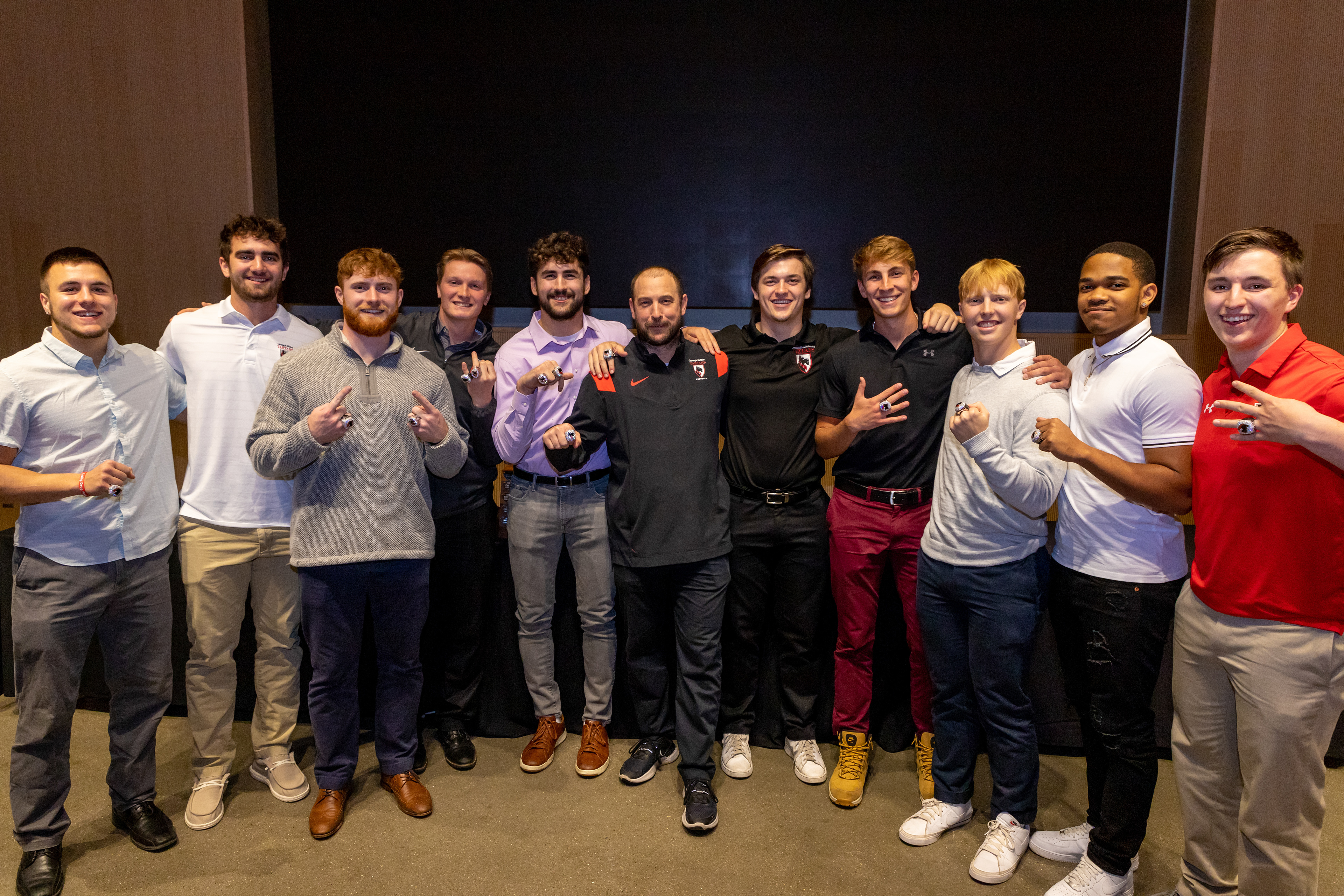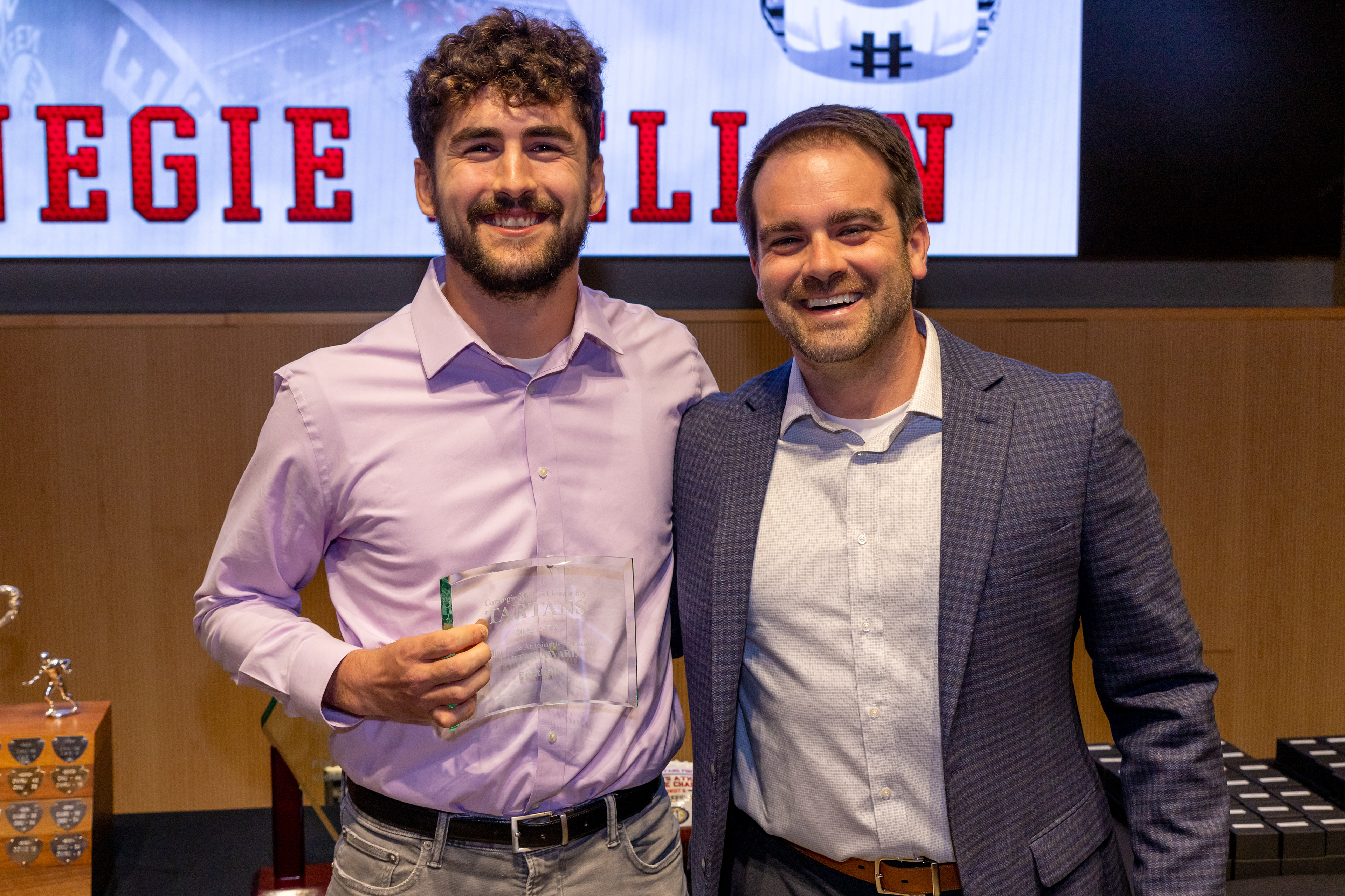 Photos from the Ring Ceremony for the 2022 President Athletics Conference Champions, the Carnegie Mellon University Tartans!