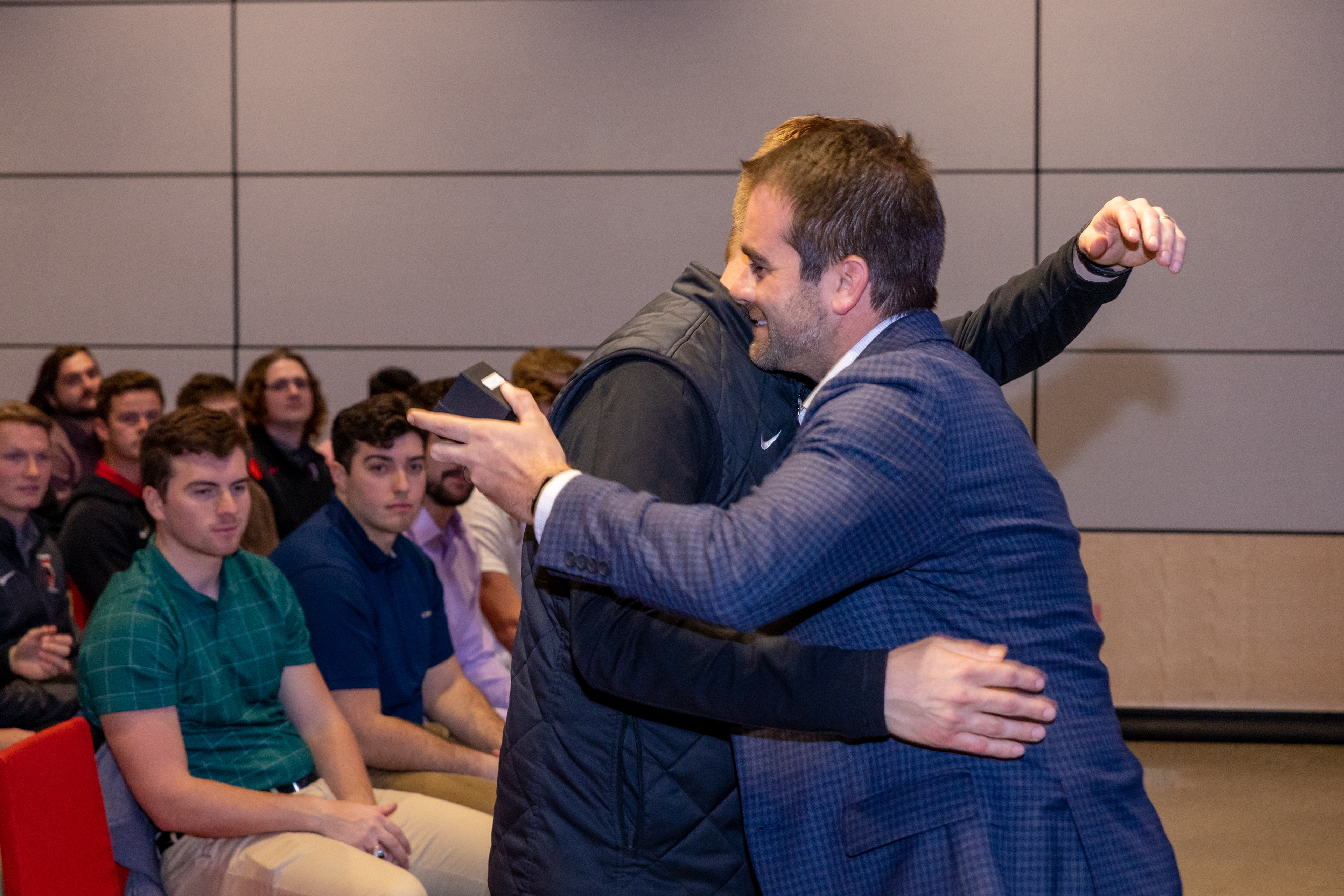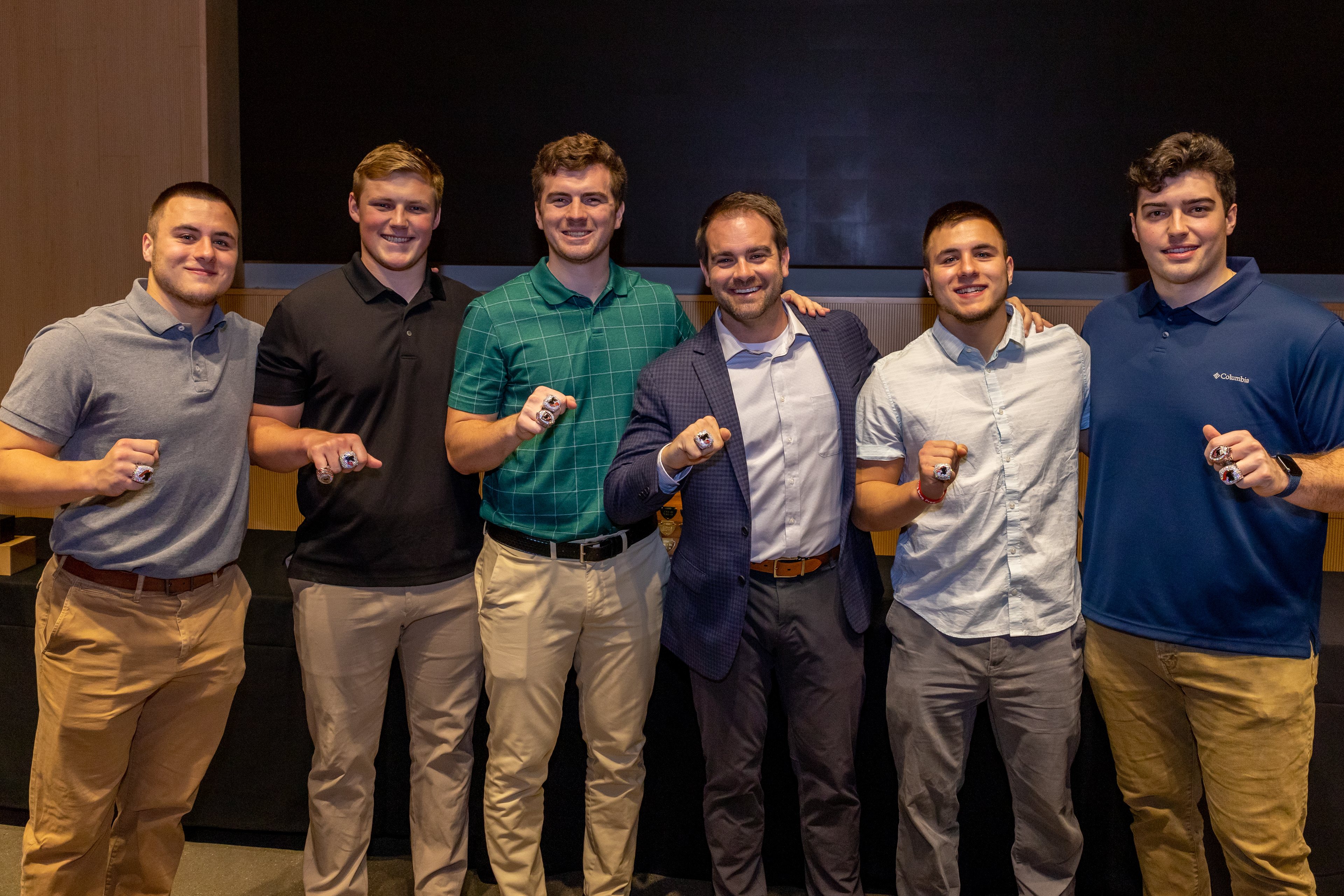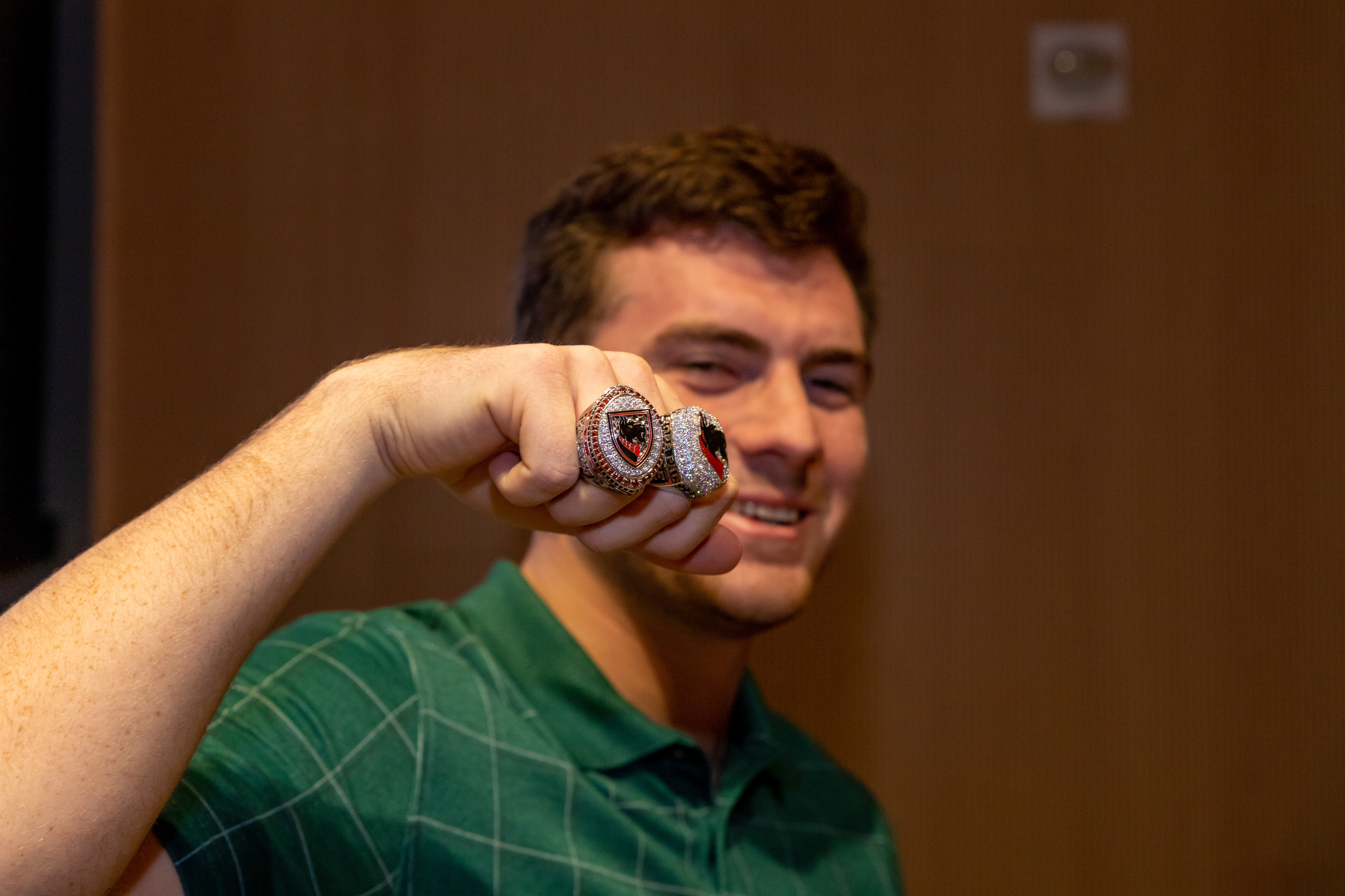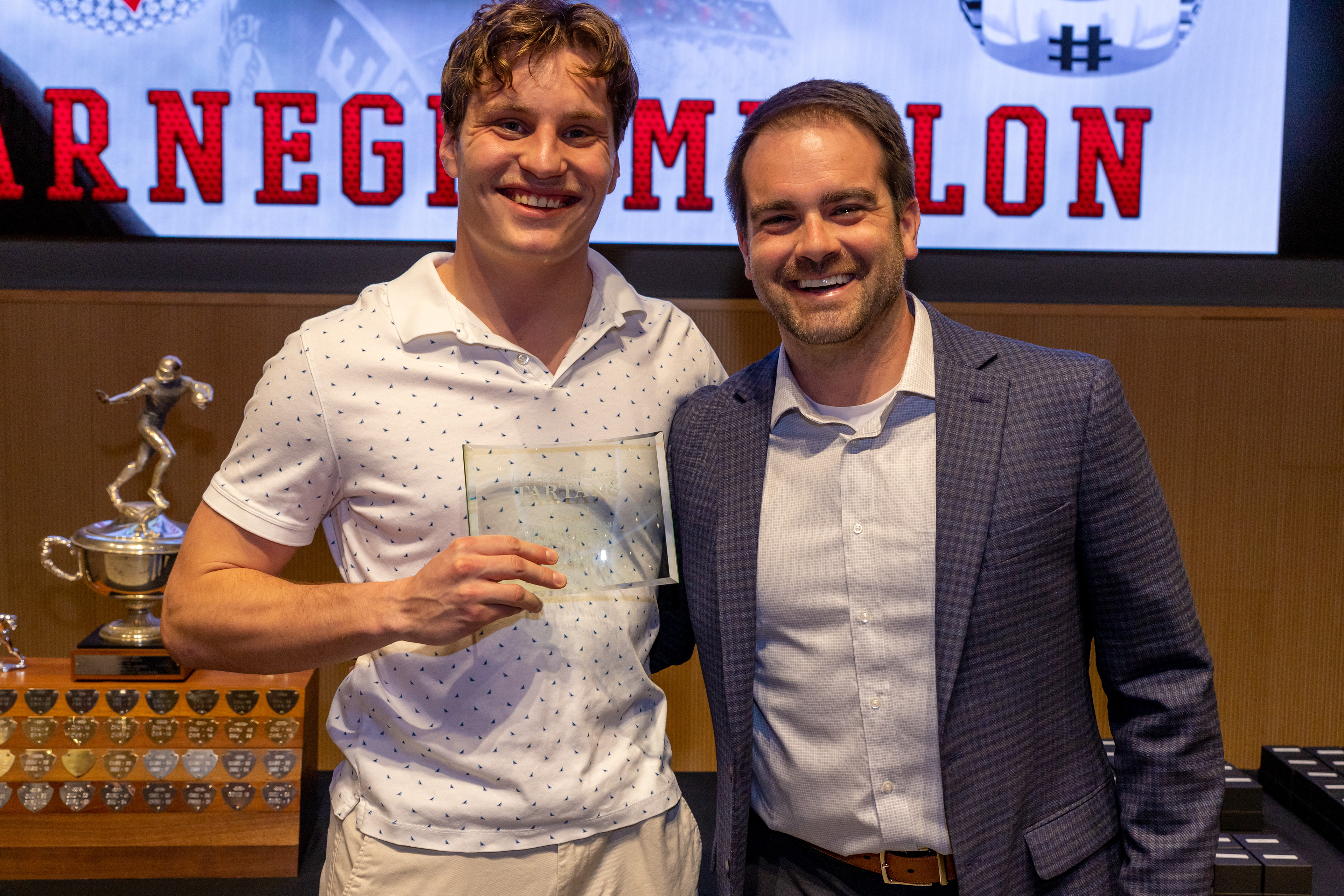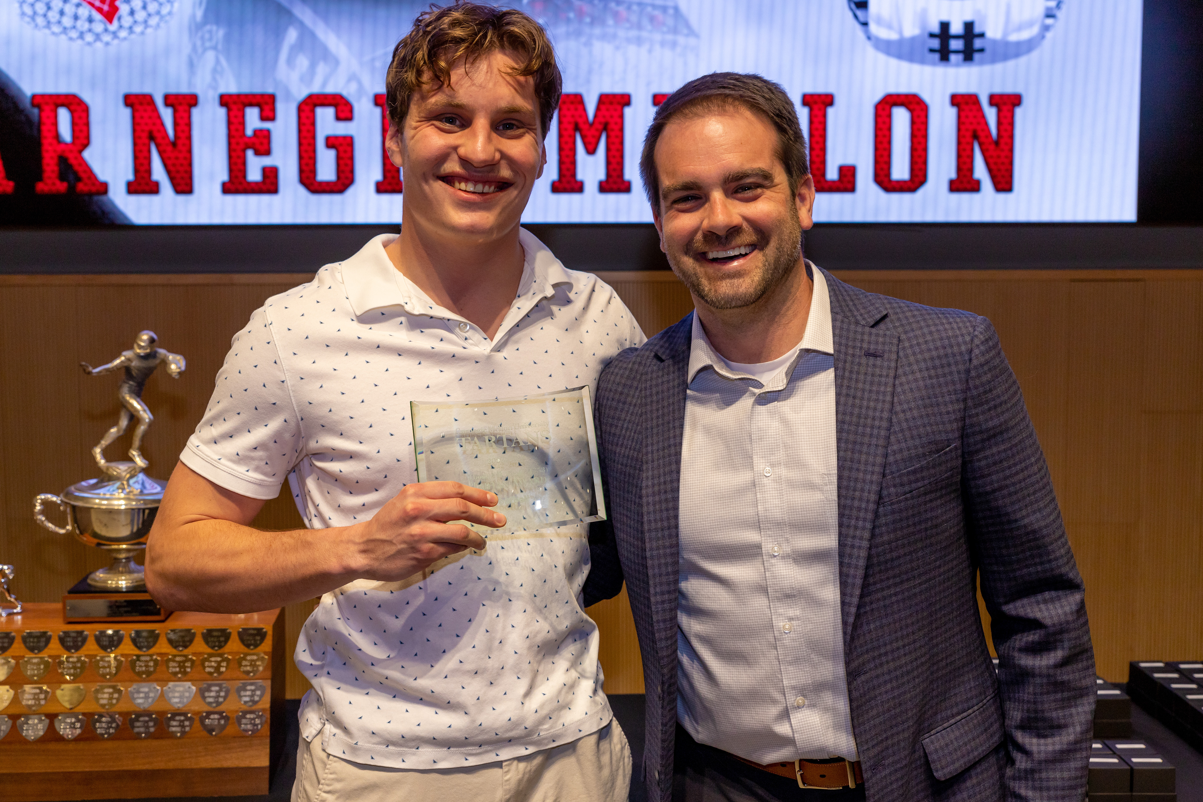 Photos from the Ring Ceremony for the 2022 President Athletics Conference Champions, the Carnegie Mellon University Tartans!