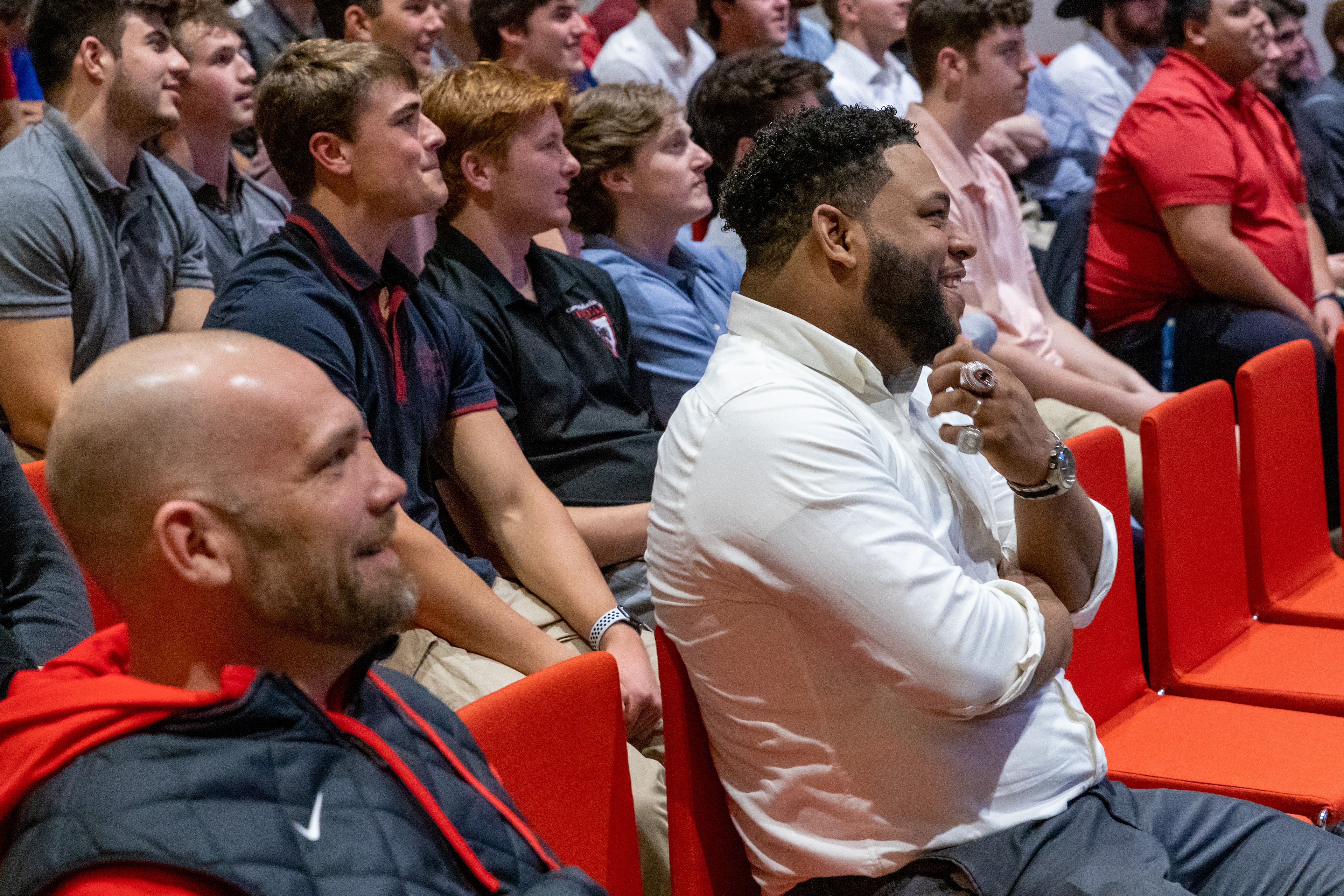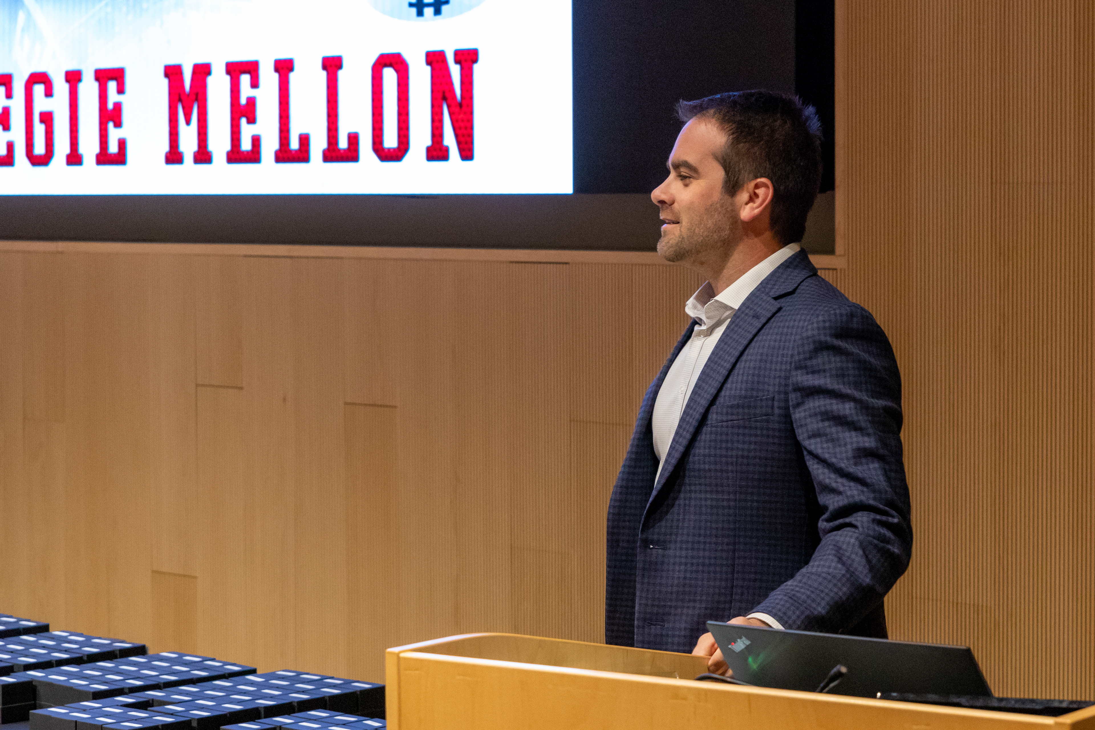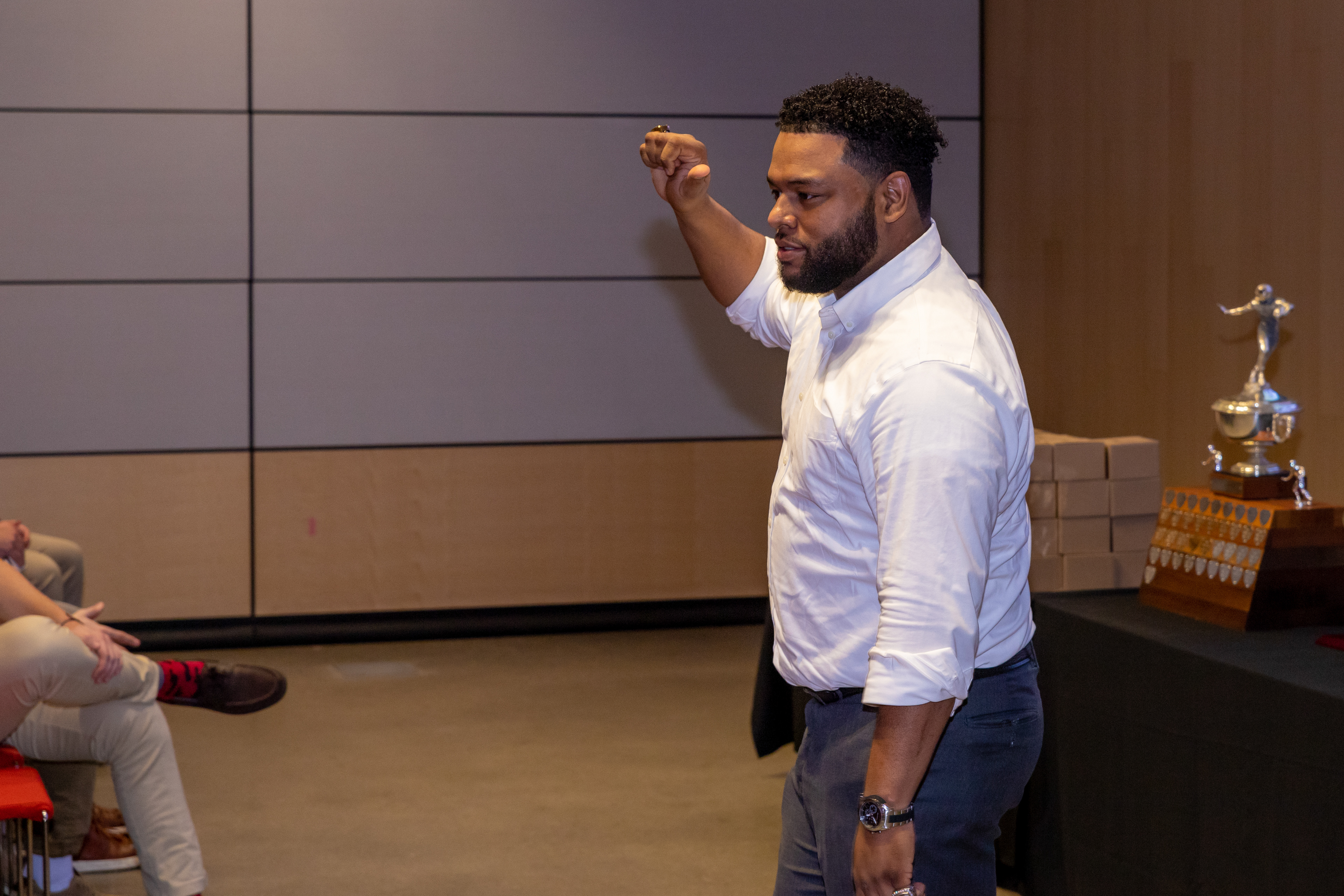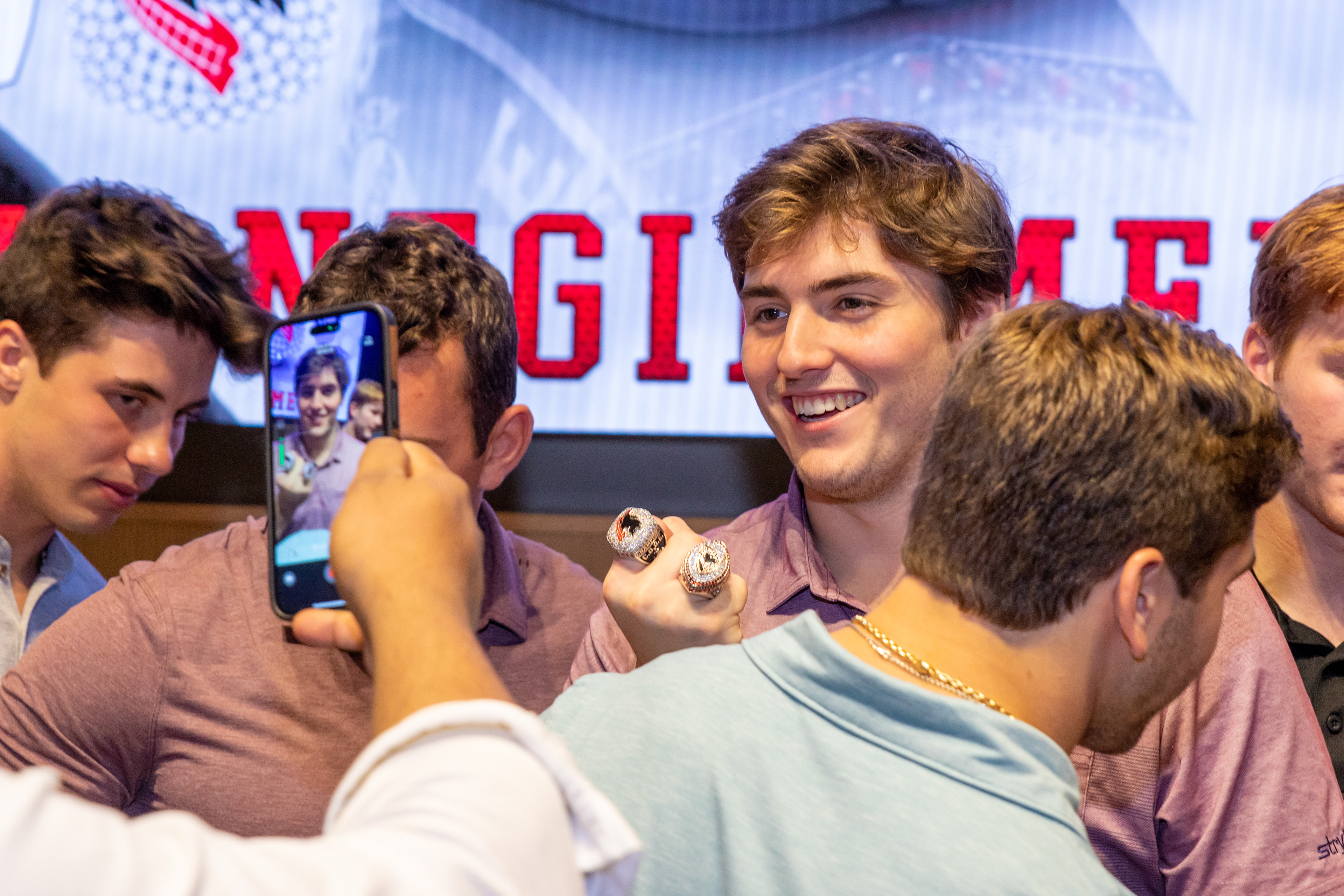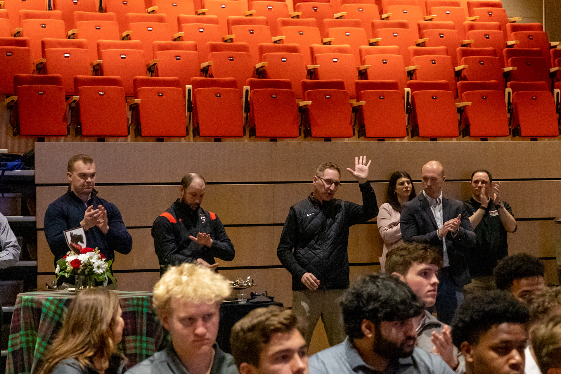 Photos from the Ring Ceremony for the 2022 President Athletics Conference Champions, the Carnegie Mellon University Tartans!
