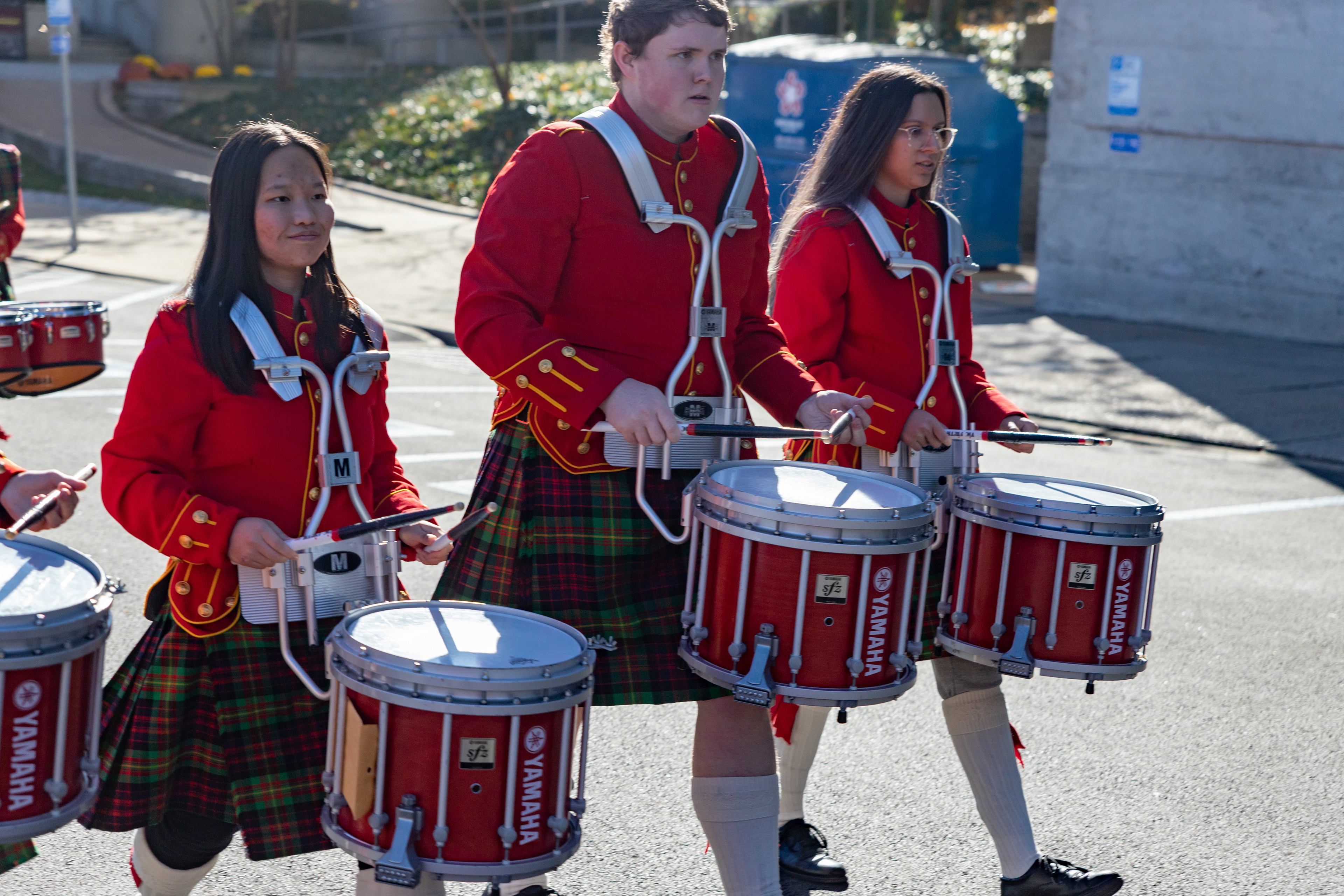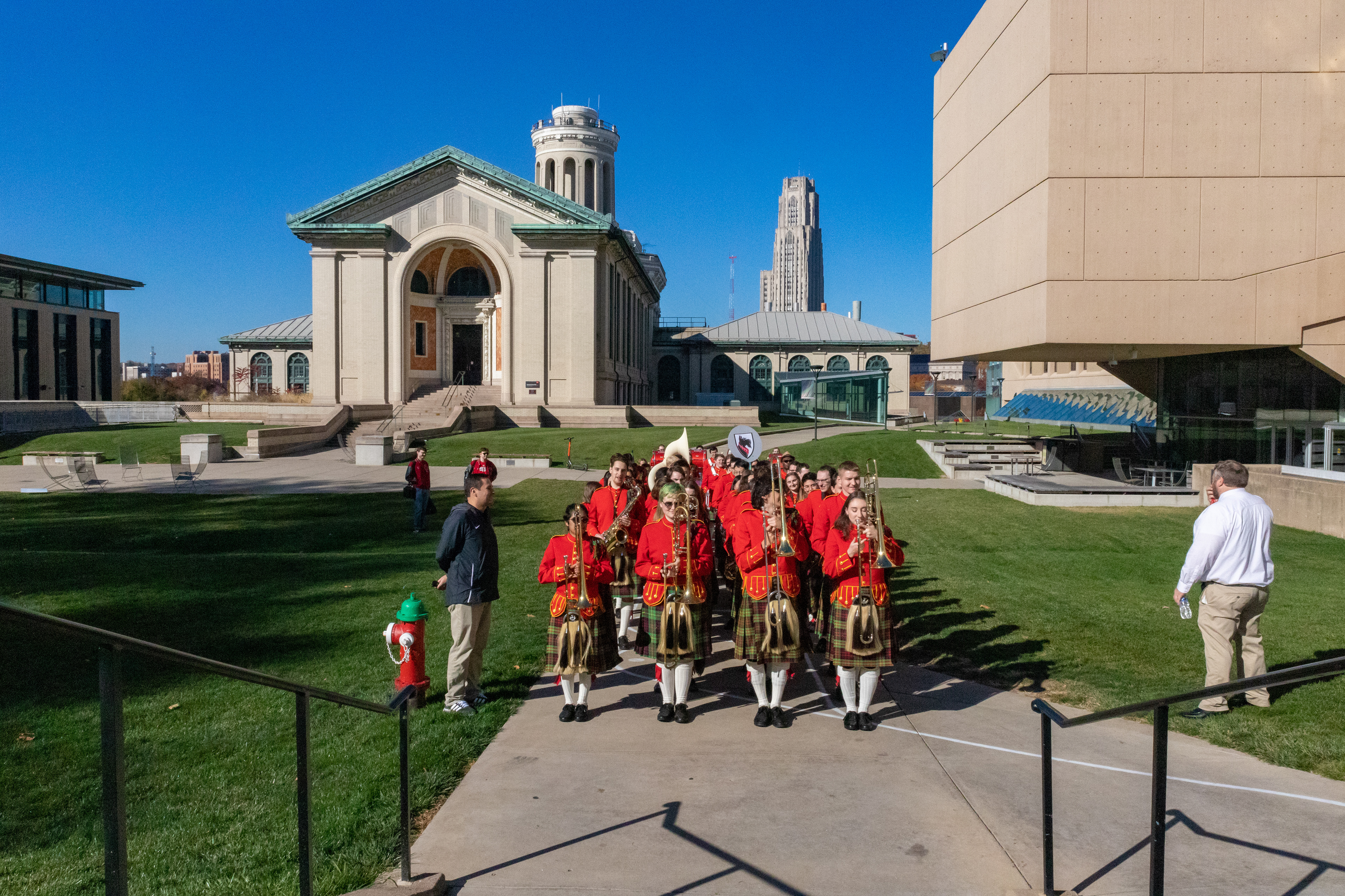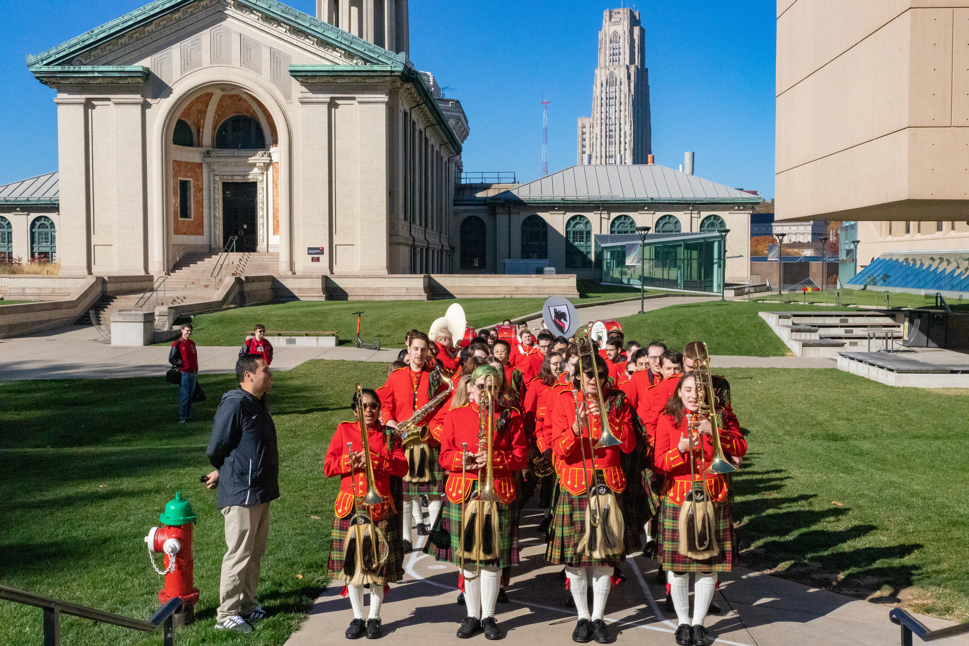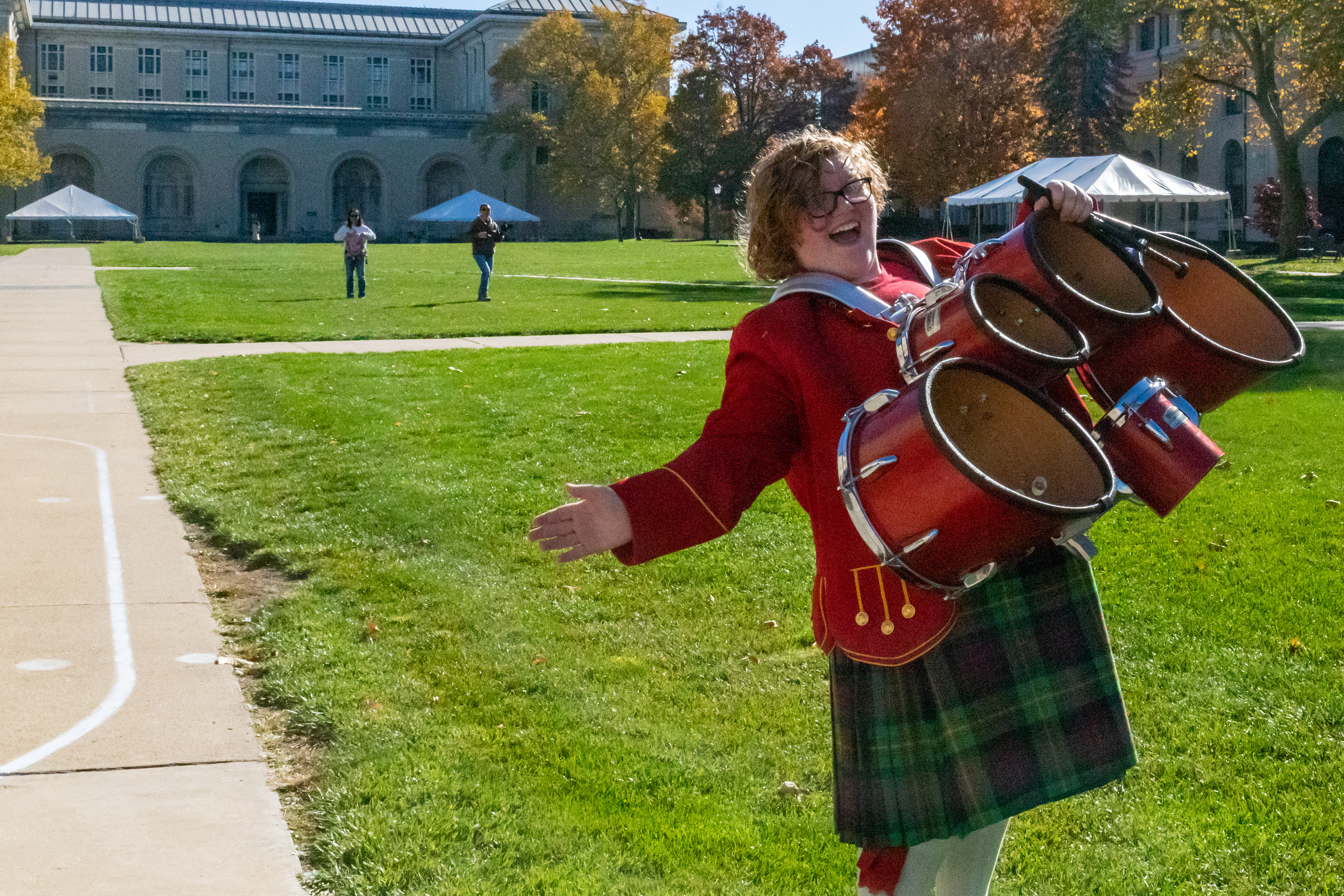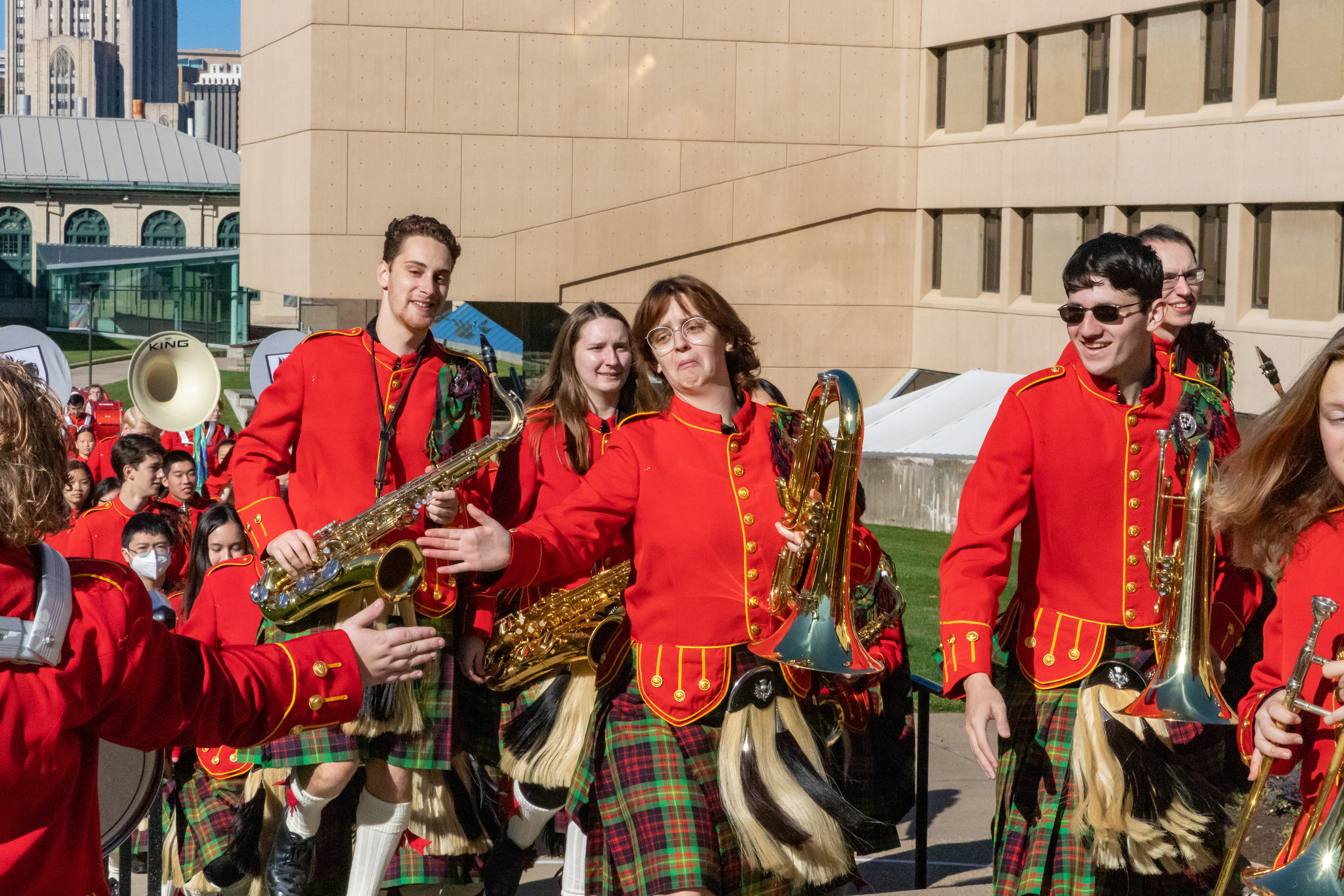 The Kilties march through campus on their way to and from formal pictures and spread homecoming cheer.